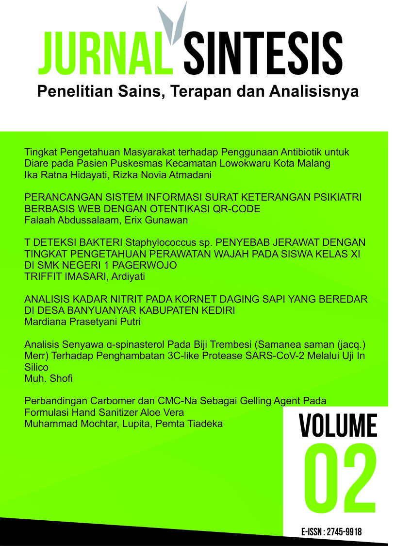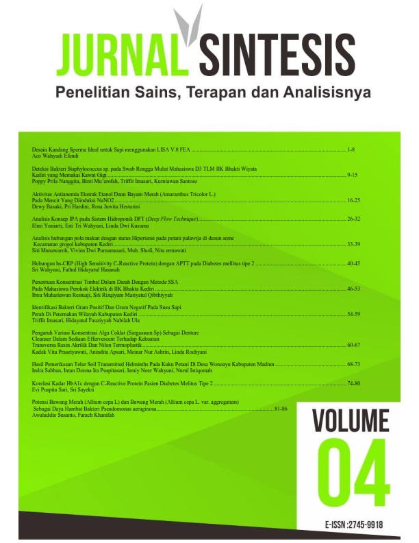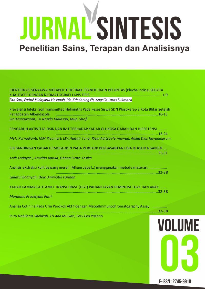 Jurnal Sintesis Sains Sains Terapan Analisis Laboratorium Institut Ilmu Kesehatan Bhakti Wiyata